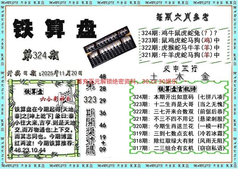 324期精解铁算盘玄机本期开出如意码{七拼八凑}